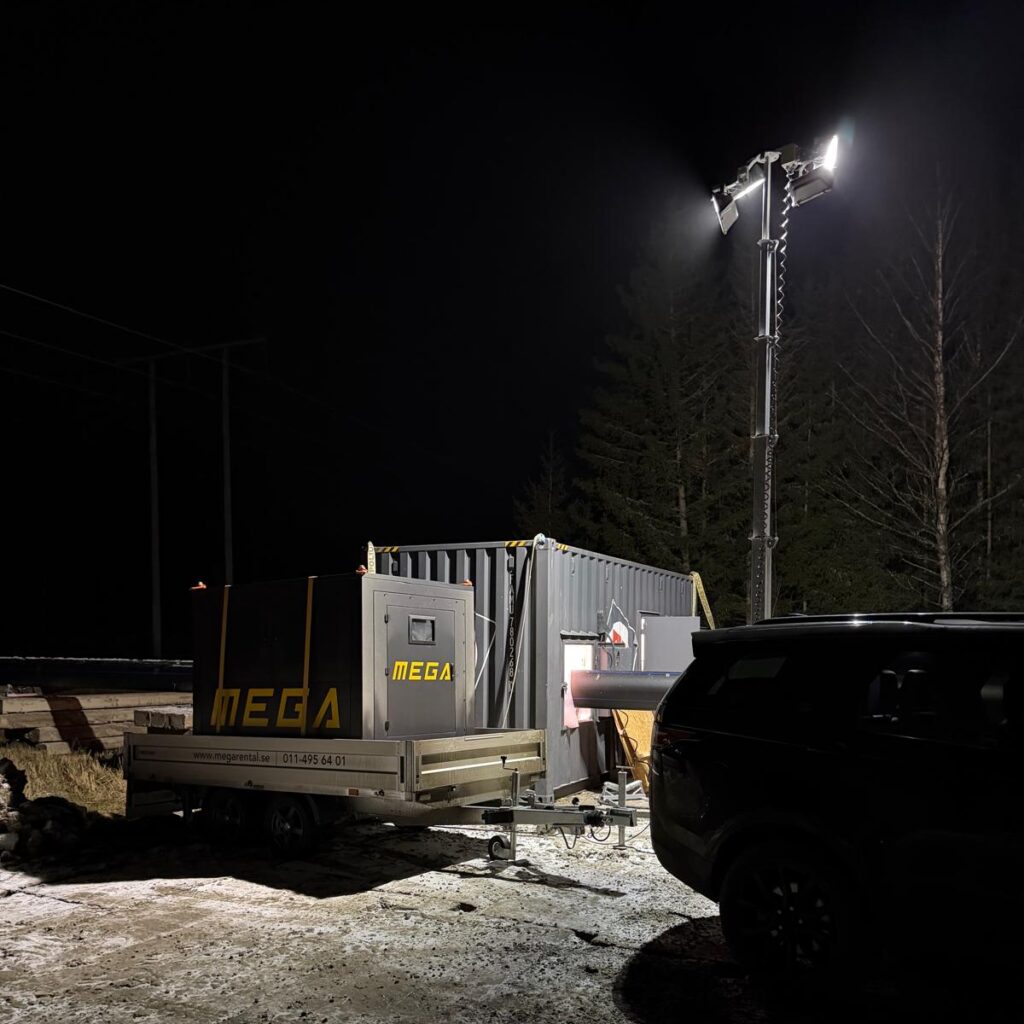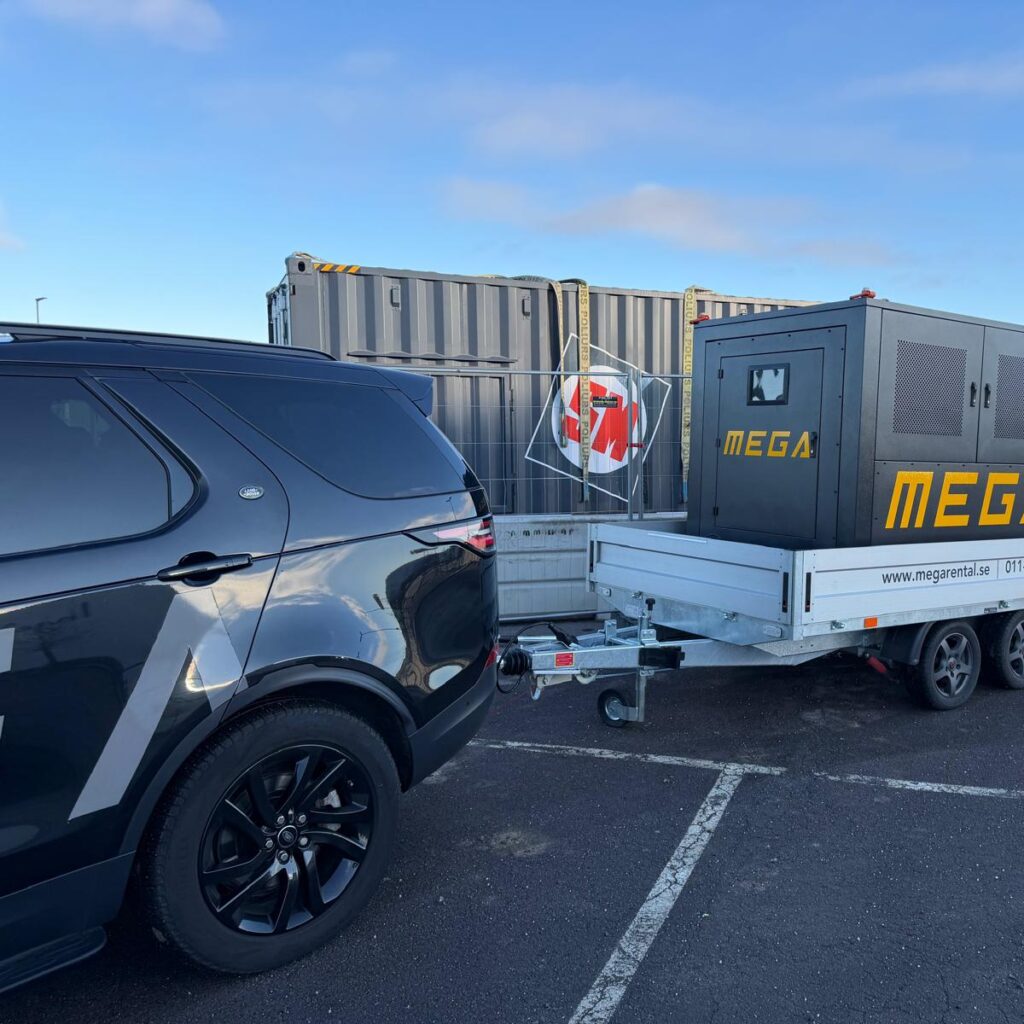 Vi levererar komplett elverk på släp till er site. Vi kan även ombesörja laddning – allt för att ni skall kunna fokusera på er kärnverksamhet.